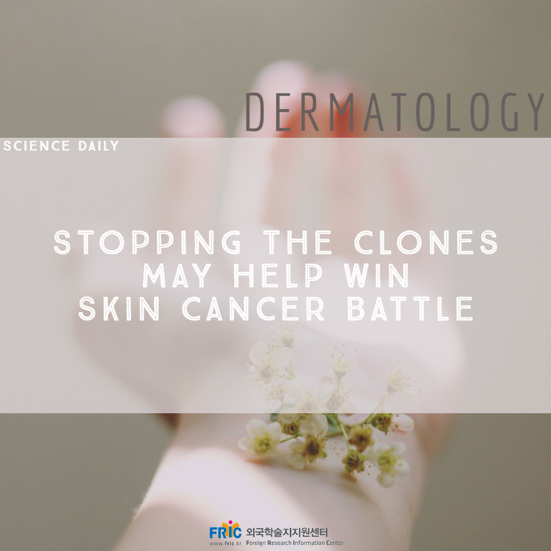 임상의학 최신뉴스 [Dermatology] Stopping the clones may help win skin cancer battle by 외국학술지지원센터 2020. 7. 14. 이미지를 누르면 원문 페이지로 이동합니다. 공유하기 게시글 관리 연세대학교 외국학술지지원센터(FRIC) '임상의학 최신뉴스' 카테고리의 다른 글 [Gastroenterology] Antibiotics use early in life increases risk of inflammatory bowel disease later in life (0) 2020.07.31 [Epidemiology] Epidemiologists develop new tool for measuring the pace of aging across the life course (0) 2020.07.28 [Dentistry] Materials scientists drill down to vulnerabilities involved in human tooth decay (0) 2020.07.10 [Cardiology] COVID-19: Study shows virus can infect heart cells in lab dish (0) 2020.07.09 [Anesthesiology] How do we disconnect from the environment during sleep and under anesthesia? (0) 2020.07.08 관련글 [Gastroenterology] Antibiotics use early in life increases risk of inflammatory bowel disease later in life [Epidemiology] Epidemiologists develop new tool for measuring the pace of aging across the life course [Dentistry] Materials scientists drill down to vulnerabilities involved in human tooth decay [Cardiology] COVID-19: Study shows virus can infect heart cells in lab dish 댓글