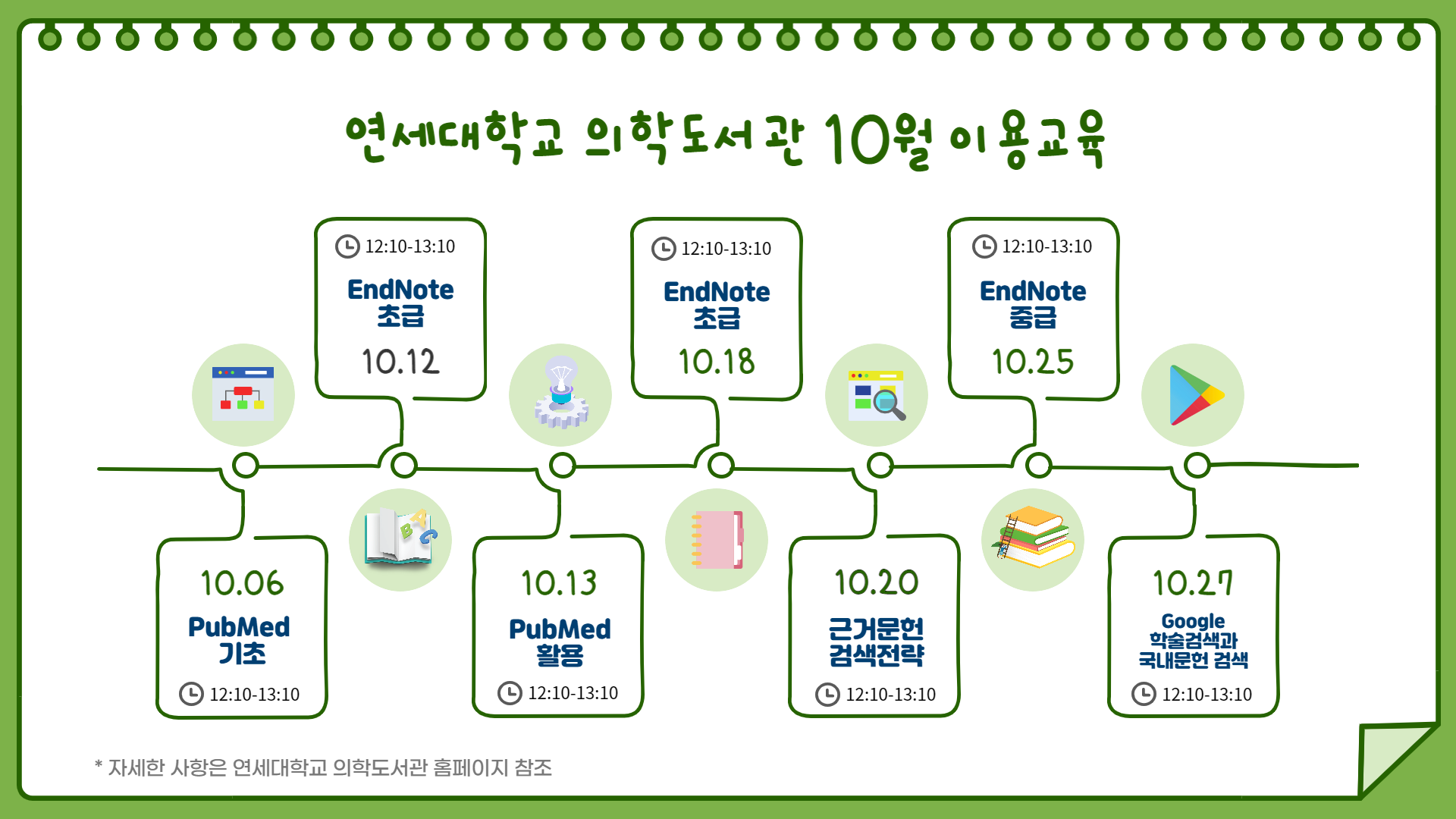 | 연세대학교 의학도서관 11월 교육 일정 (0) | 2021.11.01 |