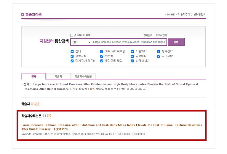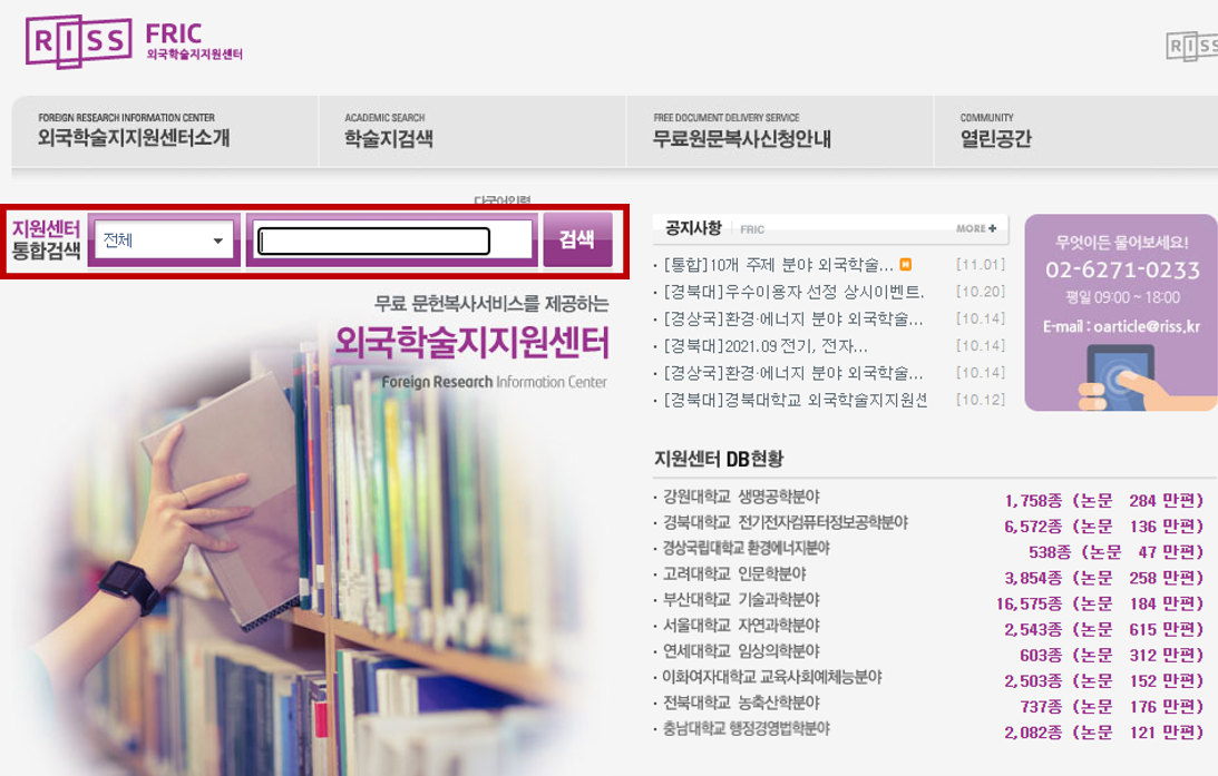 2. 지원센터 통합검색에서 원하는 논문 검색