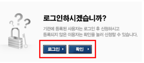 5. 기관등록 여부에 따라 로그인 혹은 확인
