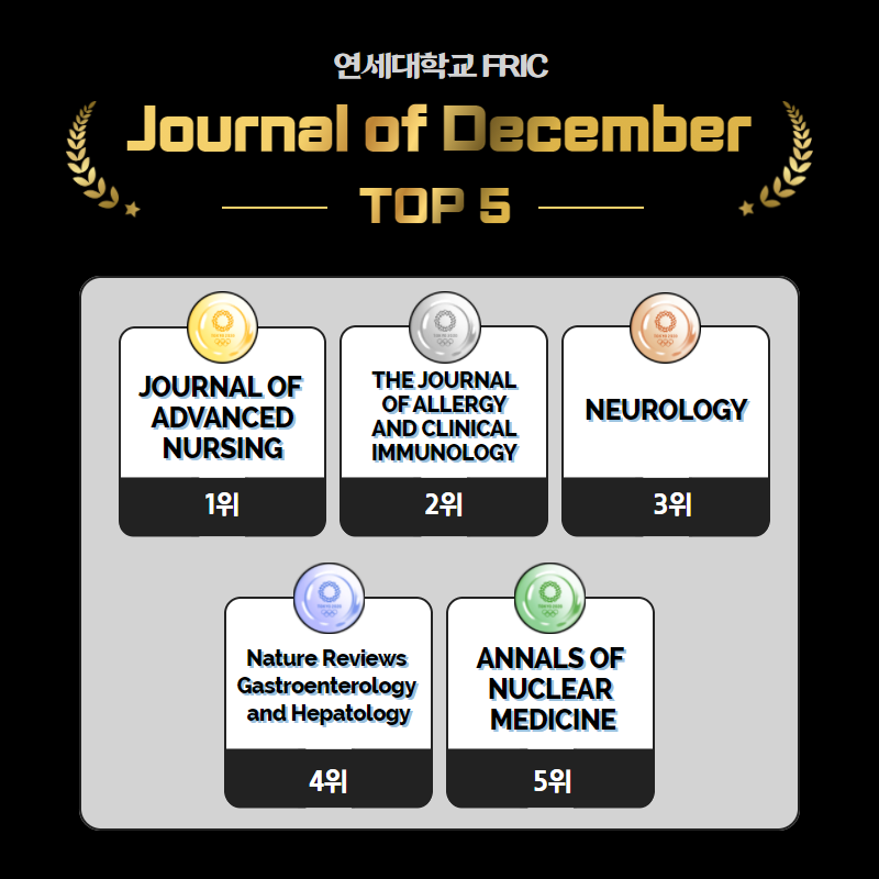 2021년 12월 한 달 동안 연세대 외국학술지 지원센터로 가장 신청이 많이 들어왔던 저널 5종입니다.