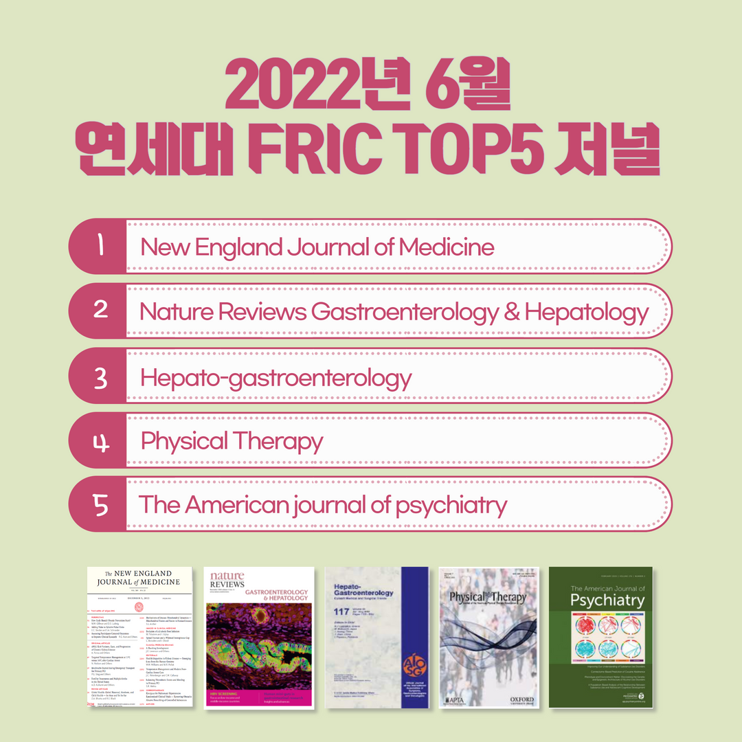 2022년 6월 한 달 동안 연세대 외국학술지 지원센터로 가장 신청이 많이 들어왔던 저널 5종입니다.