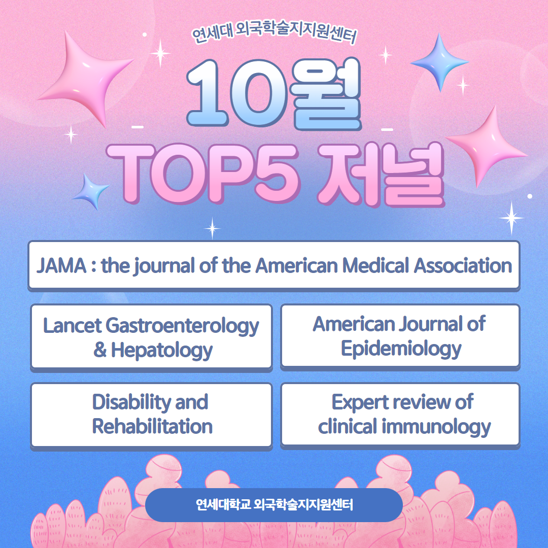 2023년 10월 한 달 동안 연세대학교 외국학술지 지원센터로 가장 신청이 많이 들어왔던 저널 5종입니다.