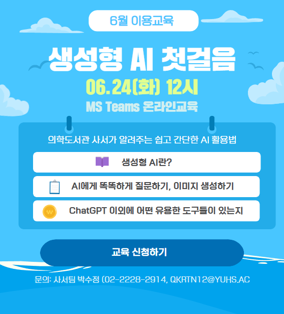 모두 주목! 의학도서관 사서가 '생성형 AI'에 대해 쉽고 간단하게 알려드립니다!