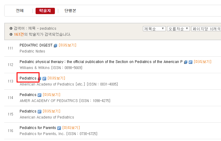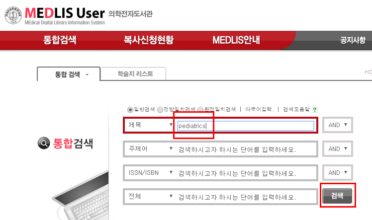 (1) MEDLIS 검색창에서 제목 혹은 ISSN으로 검색